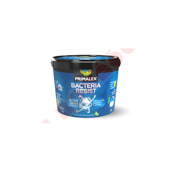 Primalex Bacteria Resist je vysoce kryvý a odolný vnitřní nátěr nové generace doplněný o technologii ACTIVE SILVER TECHNOLOGY, která odolává růstu bakterií a plísní na povrchu nátěru. Poskytuje vysoce omyvatelný povrch odolný vůči dezinfekčním přípravkům, prachu i běžným skvrnám. Testováno ve specializované laboratoři na bakteriální rezistenci vůči MRSA a E-Coli aj. Proto se zejména doporučuje do nemocnic, klinik,lékařských ordinací, operačních sálů, školek, škol, hotelů a restaurací.