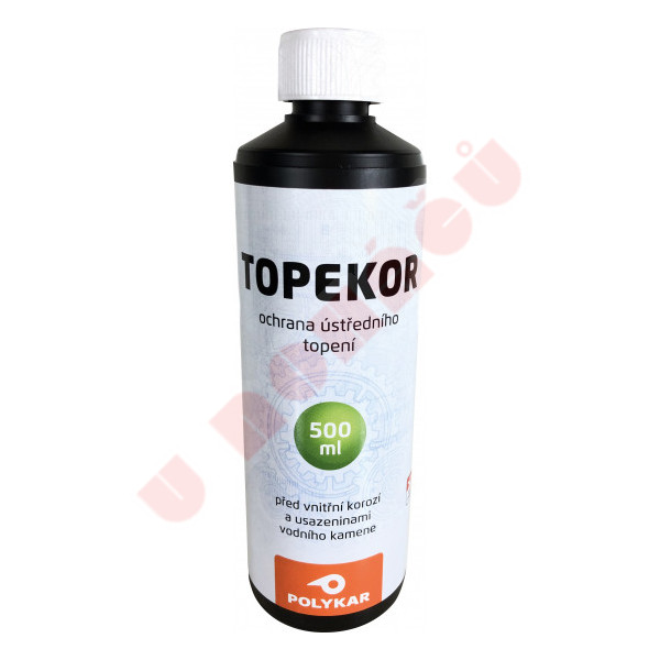 Topekor, prostředek proti korozi a usazování vodního kamene v systémech ústředního topení. Objem balení zaručuje dokonalou ochranu systému s objemem do 400 l vody v průběhu minimálně 2 let. Přípravek je vhodný do všech systémů ústředního topení, kde je topným mediem voda, včetně podlahového topení.