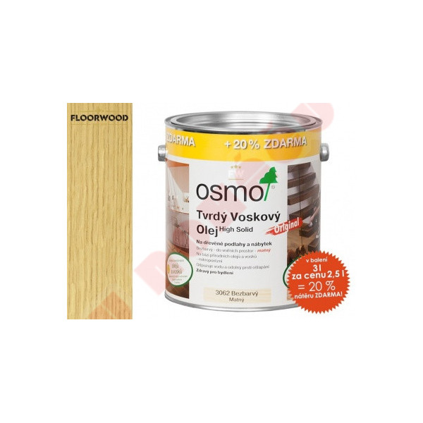 Osmo olej 3062 MAT - Tvrdý voskový olej Osmo original 3 l AKCE (20 % zdarma)